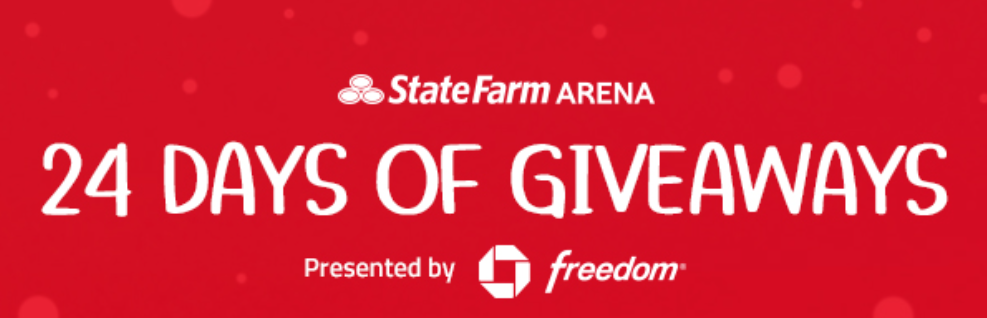 Just in time for the holidays, State Farm Arena today announced 24 Days of Giveaways Presented by Chase Freedom. Starting Monday, December 1, the award-winning downtown Atlanta venue will feature a special giveaway for specific events each day for 24 consecutive days. Fans can visit StateFarmArena.com/24DaysofGiveaways for complete sweepstakes details and to stay up to date on important information.